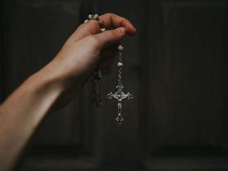 Het bidden van de rozenkrans begint met het maken van het kruisteken en de woorden: In de naam van de Vader, de Zoon en de Heilige Geest. Amen.
